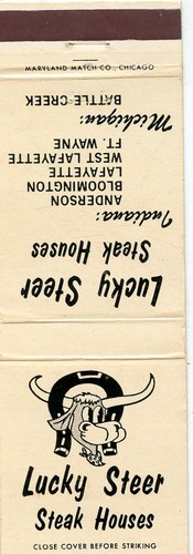Lucky Steer Steak House Fort Wayne Anderson Lafayette Indiana Matchbook Ebay